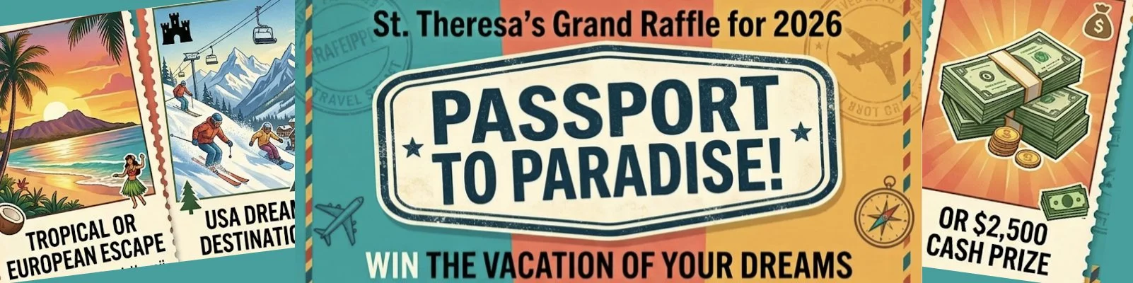 Every ticket purchased helps support St. Theresa’s mission and community programs. Your participation makes a meaningful difference—and could send you on an unforgettable journey.